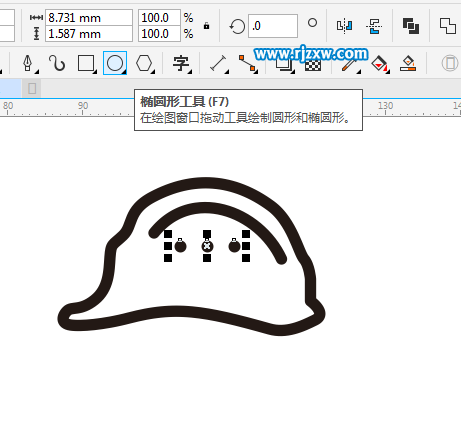 第1步、打开Coreldraw软件,使用钢笔工具,绘制一个安全帽外框出来。