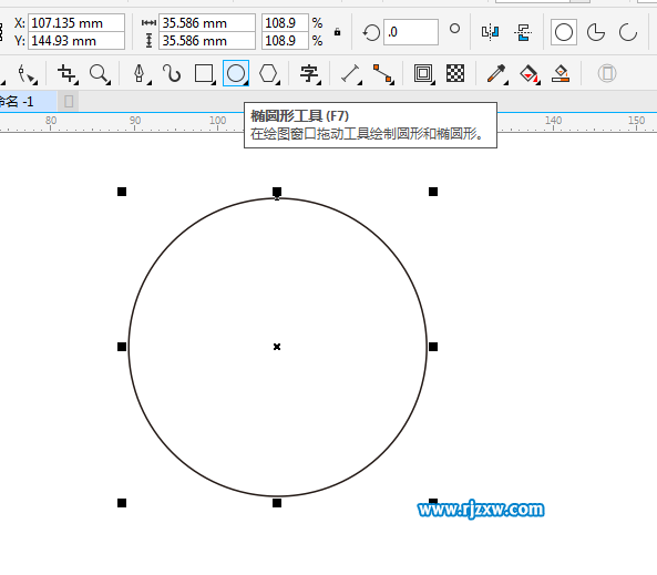 第1步、首先打开软件,点击椭圆形工具,绘制一个正圆出来,效果如下: