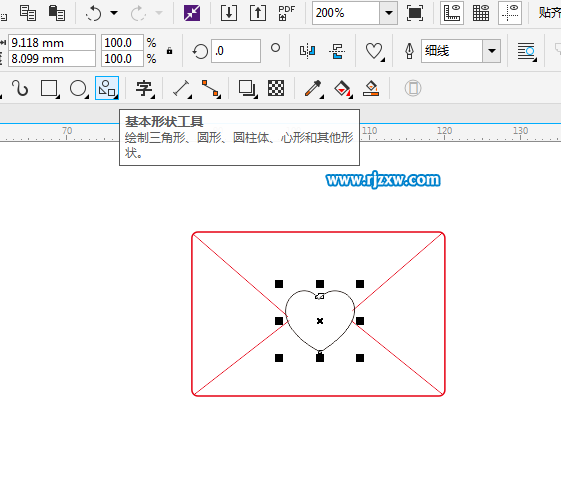 第3步、再使用基本形状工具,绘制一个心形出来。再调整一下心形。