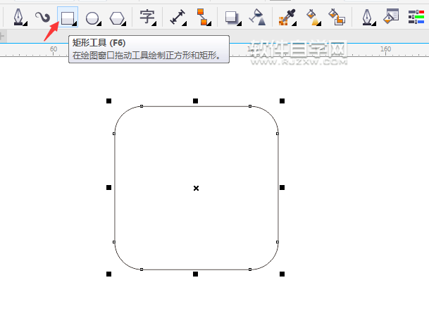 第1步、打开CDRX7软件,点击矩形工具,按住CTRL不放,绘制一下正方形出来,并进行倒圆角处理。