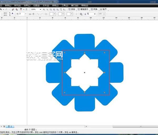 第1步、打开CDR软件,绘制一个矩形,并进行倒圆角,然后使用变形旋转功能,进行旋转副本。旋转45度,效果如下: