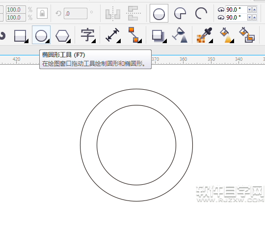 第1步、打开CDR软件,点击椭圆工具,绘制二个不同大小的同心圆出来。