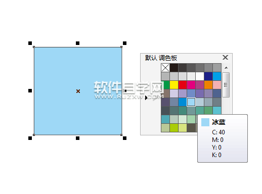 第3步、然后选中矩形,点击默认调色板上面的冰蓝色。效果如下: