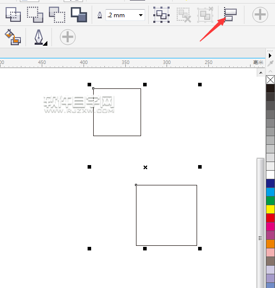 第1步、打开CDR软件,点击矩形绘制二个矩形出来,效果如下:
