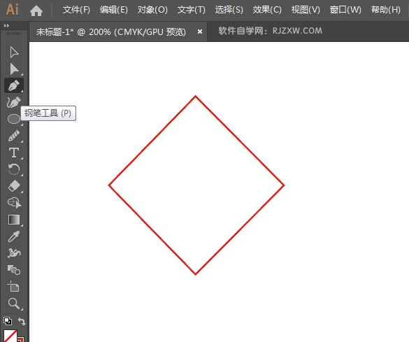 第1步、打开AI软件,绘制一个矩形出来,然后再旋转45度后的效果如下: