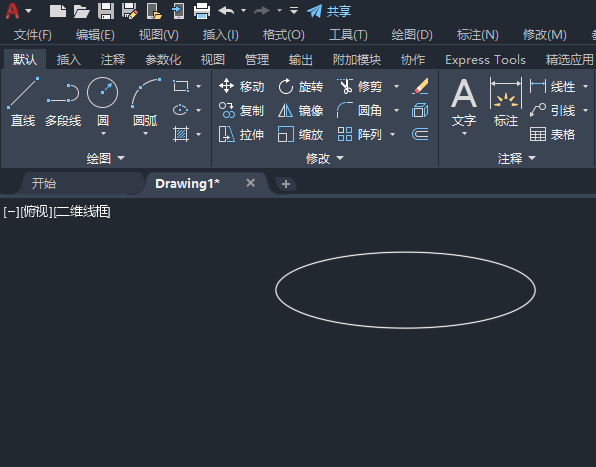 1、打开CAD软件,创建一个椭圆出来,如下图: