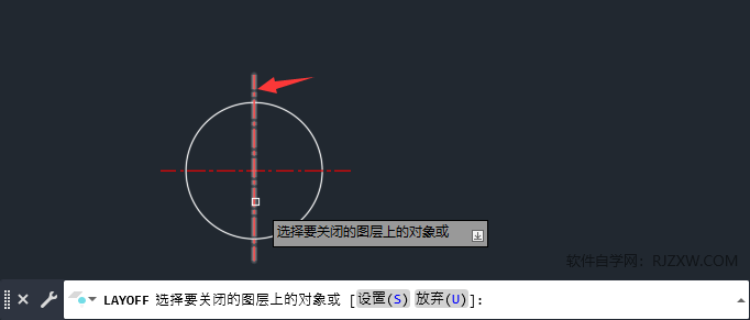2、然后,LAYOFF 选择要关闭的图层上的对象。选择红色的中心线。