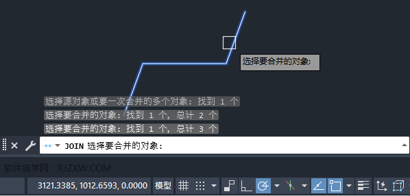 3、JOIN选择要合并的对象,选择所有直线对象。如下图: