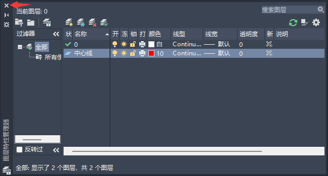 6、然后在图层浏览中,就可看到CAD2024有【二个图层】了。如下图: