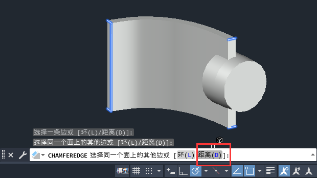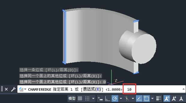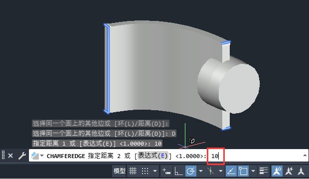 5、再设置倒圆角的另一个距离。如下图: