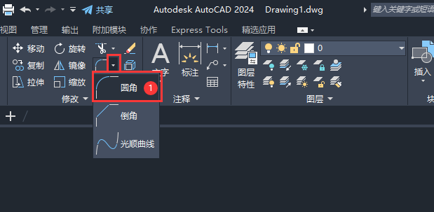 3、然后点击圆角工具,或是按F命令。如下图: