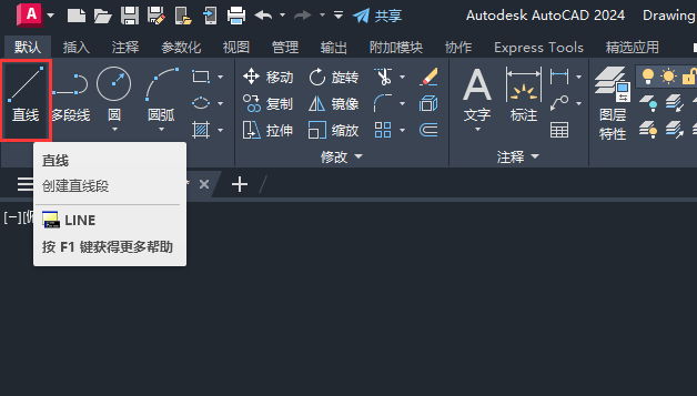 1、打开CAD2024软件,然后点击直线工具。开始绘制图形。