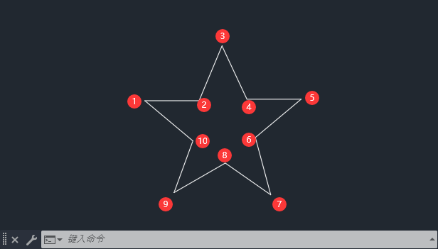 3、然后按下面相关的关建点绘制五角形。如下图: