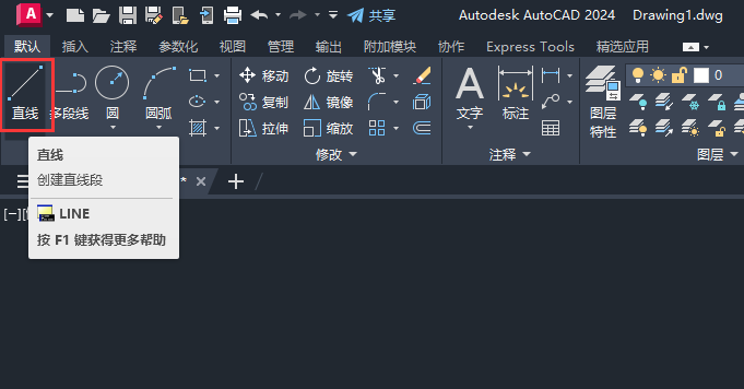 1、打开CAD2024软件,点击直线工具,或是输入LINE命令,空格。