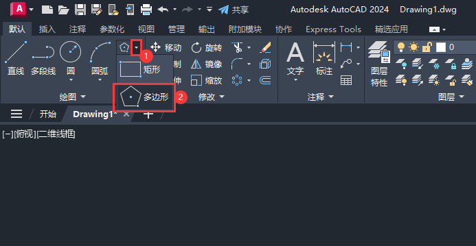1、打开CAD2024软件,点击多边形工具。