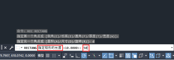 4、指定矩形的长度:输入50,空格。