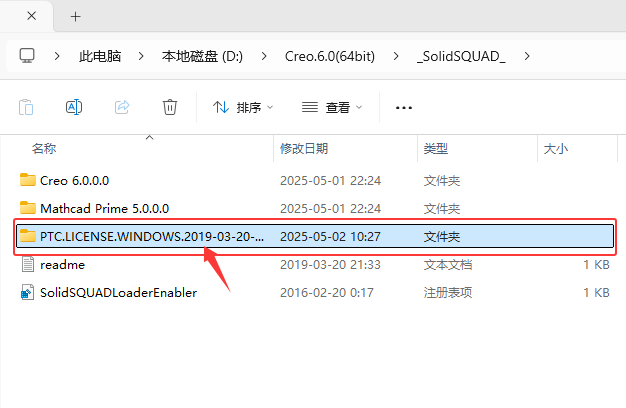 4、进入后,再双击PTC.LICENSE.WINDOWS.2019-03-20文件夹。